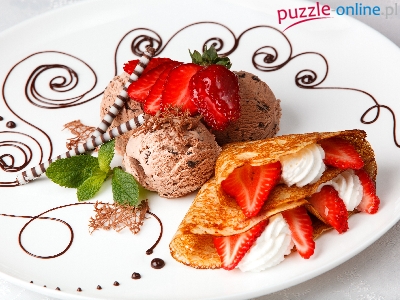 Lody, Bita śmietana, Deser, Naleśnik, Truskawki