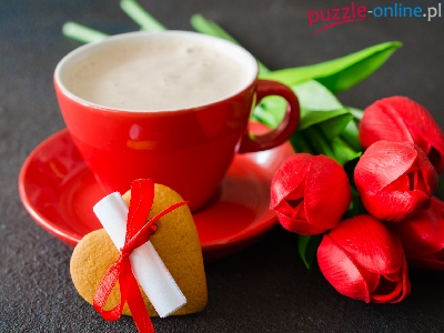 Tulipany, Walentynki, Liścik, Bukiet, Ciastko, Sztuczne, Serce, Filiżanka