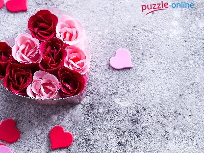 Różowe, Pudełko, Tło, Serca, Czerwone, Róże, Szare