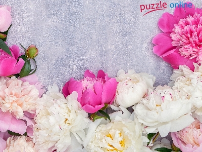 Puzzle Szare, Biało-różowe, Piwonie, Tło