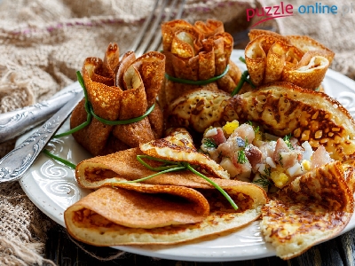 Puzzle Widelec, Naleśniki, Talerz, Serweta