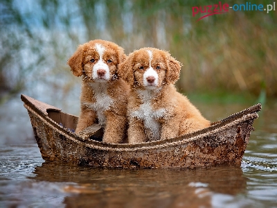 Puzzle Łódka, Psy, Szczeniaki, Retrievery z Nowej Szkocji