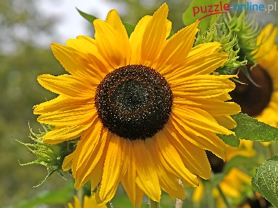 Puzzle Słonecznik, Rozświetlony, Zbliżenie