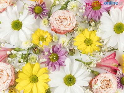 Puzzle Róże, Kolorowe, Kwiaty, Chryzantemy
