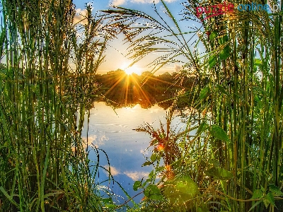 Trawy, Jezioro, Trzciny, Promienie słońca