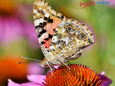 Puzzle Motyl, Kwiat, Jeżówka, Rusałka osetnik