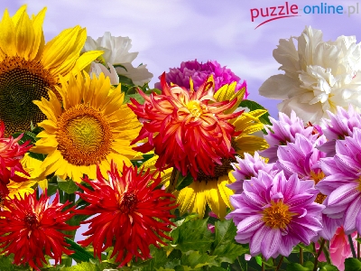 Słonecznik, Grafika, Kwiaty, Dalie, Piwonia