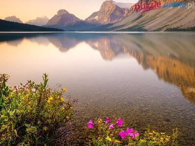 Park Narodowy Banff, Góry Skaliste, Kanada, Jezioro Bow Lake, Kwiaty, Prowincja Alberta