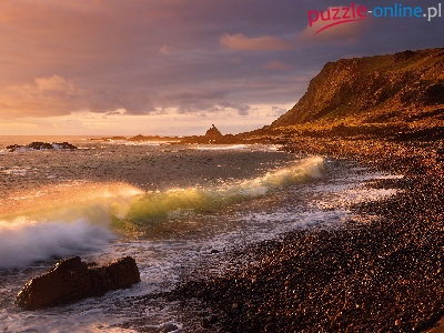 Fale, Rosja, Kamienie, Półwysep Rybacki, Morze, Góry