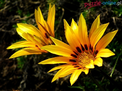 Puzzle Żółte, Dwa, Kwiaty, Gazanie