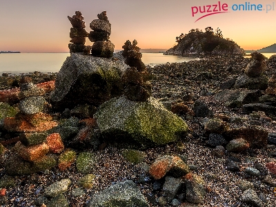 Stosy, Kanada, West Vancouver, Morze, Whytecliff Park, Kamienie, Drzewa, Vancouver