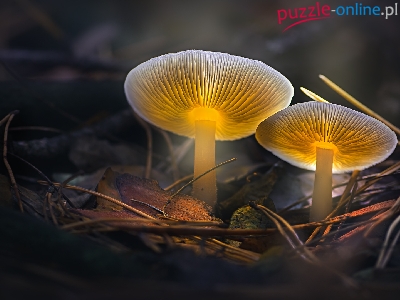 Światło, Igły, Dwa, Grzyby, Liście