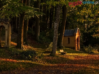 Ławeczka, Las, Drzewa, Kaplica