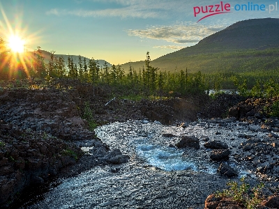 Rezerwat Putorański, Rzeka, Kraj Krasnojarski, Skały, Rosja, Słońce, Drzewa, Góry, Kamienie, Płaskowyż Putorana