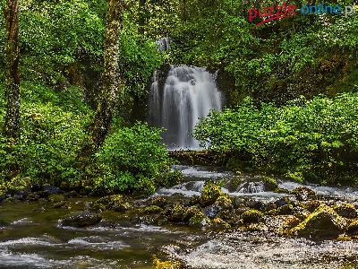 Drzewa, Rzeka, Rośliny, Wodospad, Kamienie, Las