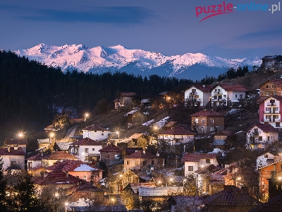 Ośnieżone, Domy, Bułgaria, Las, Góry Piryn, Szczyty, Światła
