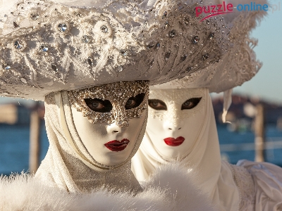 Puzzle Białe, Karnawał, Kobiety, Maski
