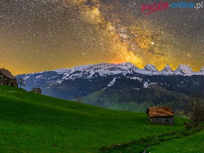 Gwiazdy, Domy, Kanton Sankt Gallen, Alt Sankt Johann, Szwajcaria, Appenzeller Alpen, Alpy Zachodnie, Wieś, Góry, Droga mleczna