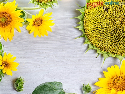 Puzzle Drewno, Słoneczniki, Deski