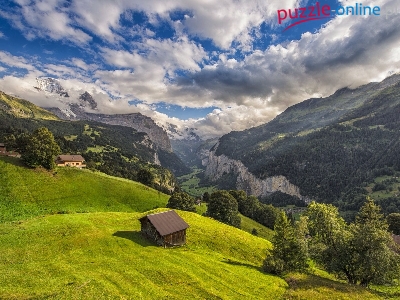 Las, Alpy Berneńskie, Chmury, Wengen, Szwajcaria, Domy, Góry, Dolina Lauterbrunnental, Kanton Berno