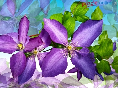 Puzzle Powojniki, Kwiaty, Fioletowe, Grafika