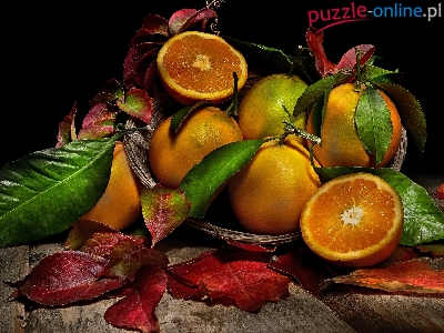 Puzzle Kolorowe, Pomarańcze, Koszyk, Liście