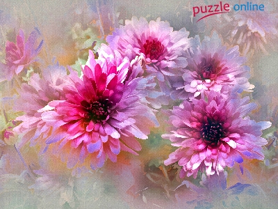 Puzzle Chryzantemy, Kwiaty, Różowe, Grafika