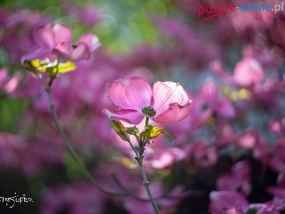 Puzzle Kwiat, Dereń, Różowy, Zbliżenie