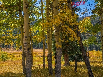 Topole osikowe, Liście, Jesień, Las, Pożółkłe