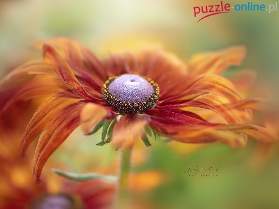 Puzzle Rudbekia, Pomarańczowy, Kwiat, Makro