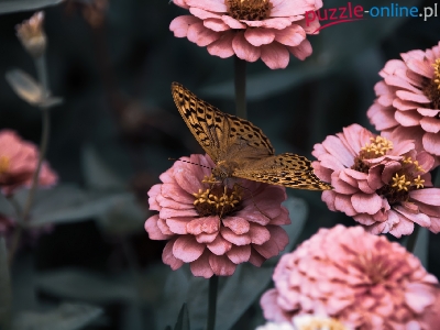 Różowe, Cynie, Motyl, Dostojka malinowiec, Kwiaty