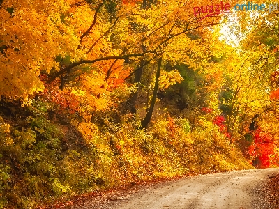 Puzzle Drzewa, Droga, Kolorowe, Jesień