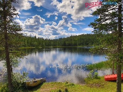 Puzzle Drzewa, Jezioro, Las, Łódki