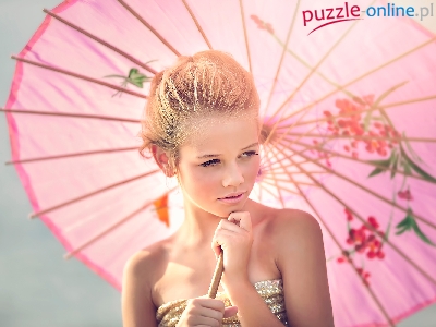 Puzzle Różowa, Blondynka, Dziewczyna, Parasolka