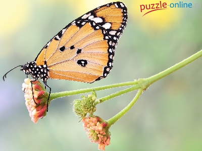 Puzzle Roślina, Motyl, Monarcha złocisty, Makro