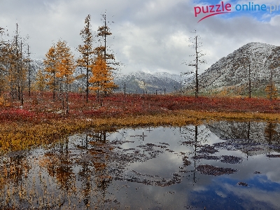 Drzewa, Rośliny, Odbicie, Góry Kołymskie, Rosja, Jesień, Obwód magadański, Kamienie, Jezioro Jack London, Mgła, Kołyma