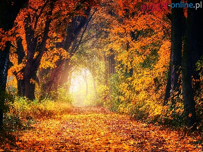 Drzewa, Rośliny, Jesień, Droga, Las