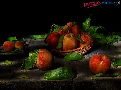 Puzzle Koszyczek, Owoce, Brzoskwinie, Liście