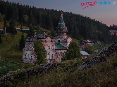 Wieś Kyn, Domy, Rosja, Cerkiew, Drzewa, Kraj Permski