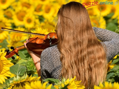 Puzzle Skrzypce, Kobieta, Blondynka, Słoneczniki