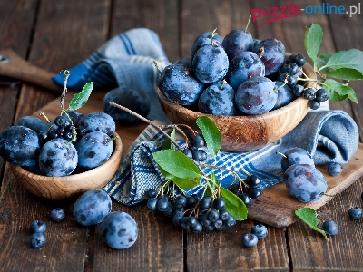 Miseczki, Deska, Śliwki, Drewniane, Czarny bez