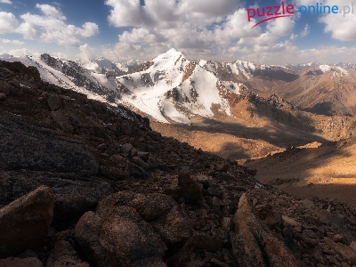 Puzzle Ośnieżony, Góry, Skały, Szczyt