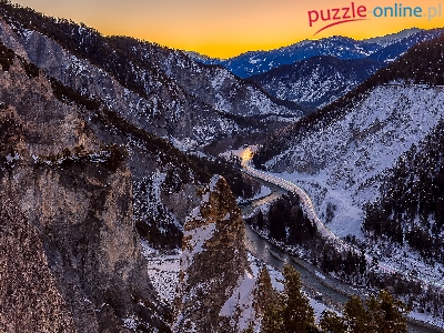 Śnieg, Ruinaulta, Kanton Gryzonia, Wąwóz, Szwajcaria, Rzeka Ren, Droga, Kanion, Góry, Versam