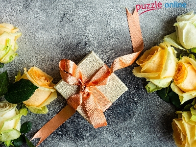 Prezent, Białe, Tło, Żółte, Róże, Szare