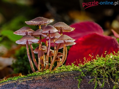 Puzzle Mech, Grzyby, Drewno, Liście
