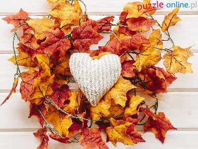 Serce, Liście, Kompozycja, Sztuczne, Klonu, Deski