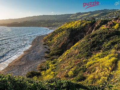 Rośliny, Wzgórza, Morze, Wybrzeże, Zielone, Krzewy