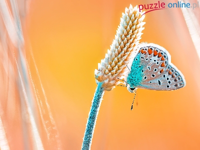 Puzzle Modraszek ikar, Roślina, Motyl, Żółte tło