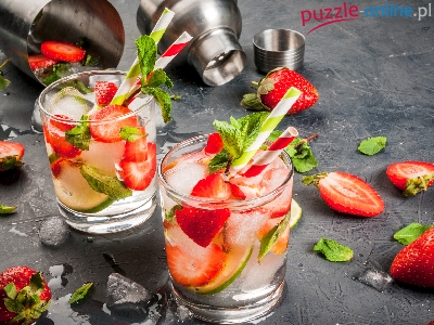 Truskawki, Szklanki, Napój, Owocowy, Limonki