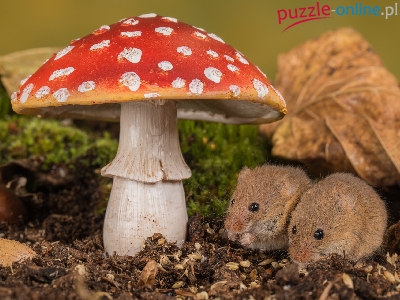 Gryzonie, Myszki, Grzyb, Muchomor, Dwie